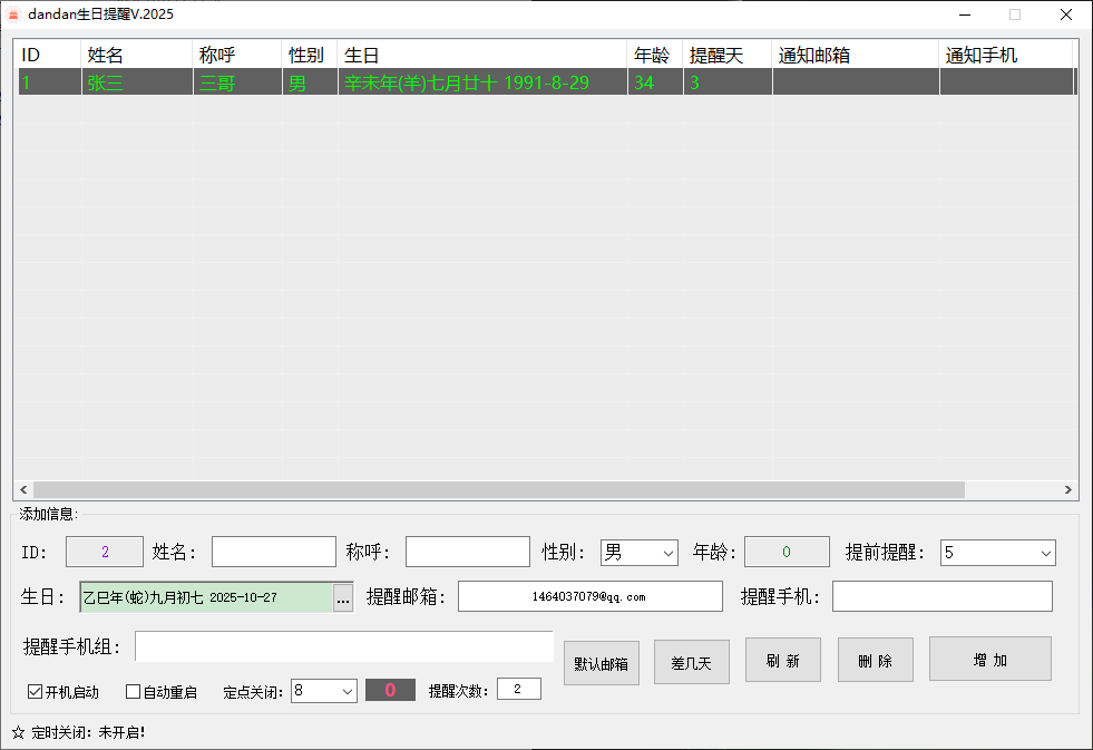 dandan生日邮箱提醒工具Ver.2025