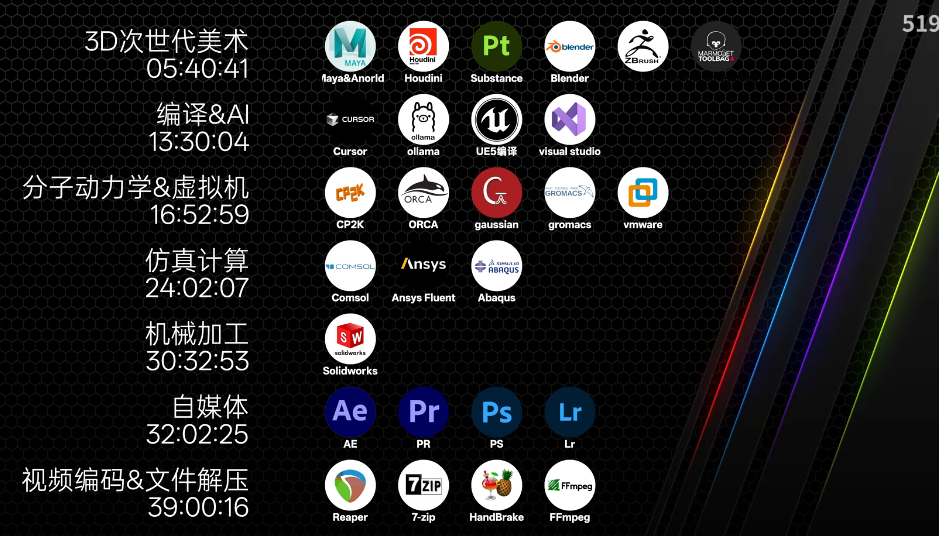 - **高端级**:以Intel Core Ultra 9 285K、AMD Ryzen9 9950X3D为代表,核心线程数拉满(16-24核),缓存和性能释放极致,专为**专业级重度任务**设计(如工业仿真、8K视频后期、AI训练、超大规模3D渲染),预算充足的专业用户首选。